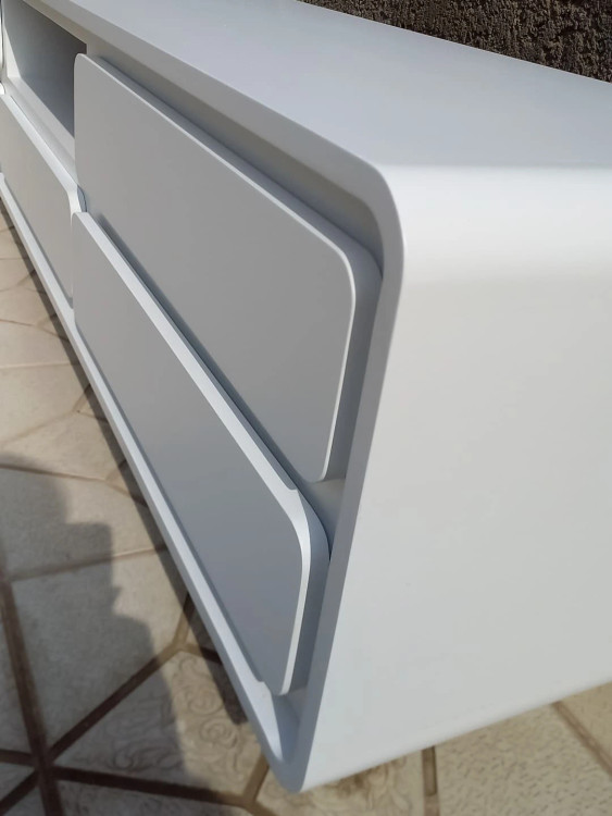 وقتی سادگی و ظرافت در طراحی، نتیجهای چنین چشمنواز خلق میکند میز تلویزیون مینیمال سفید طراحی تمیز و یکدست فضای جادار برای نظم دادن به وسایل پایههای مقاوم و خوشفرم برای هماهنگی با دکور مدرن و مینیمال، انتخابی ایدهآل مشتری عزیزمون از شمال و قابل در رنگ و ابعاد سفارشی شما
